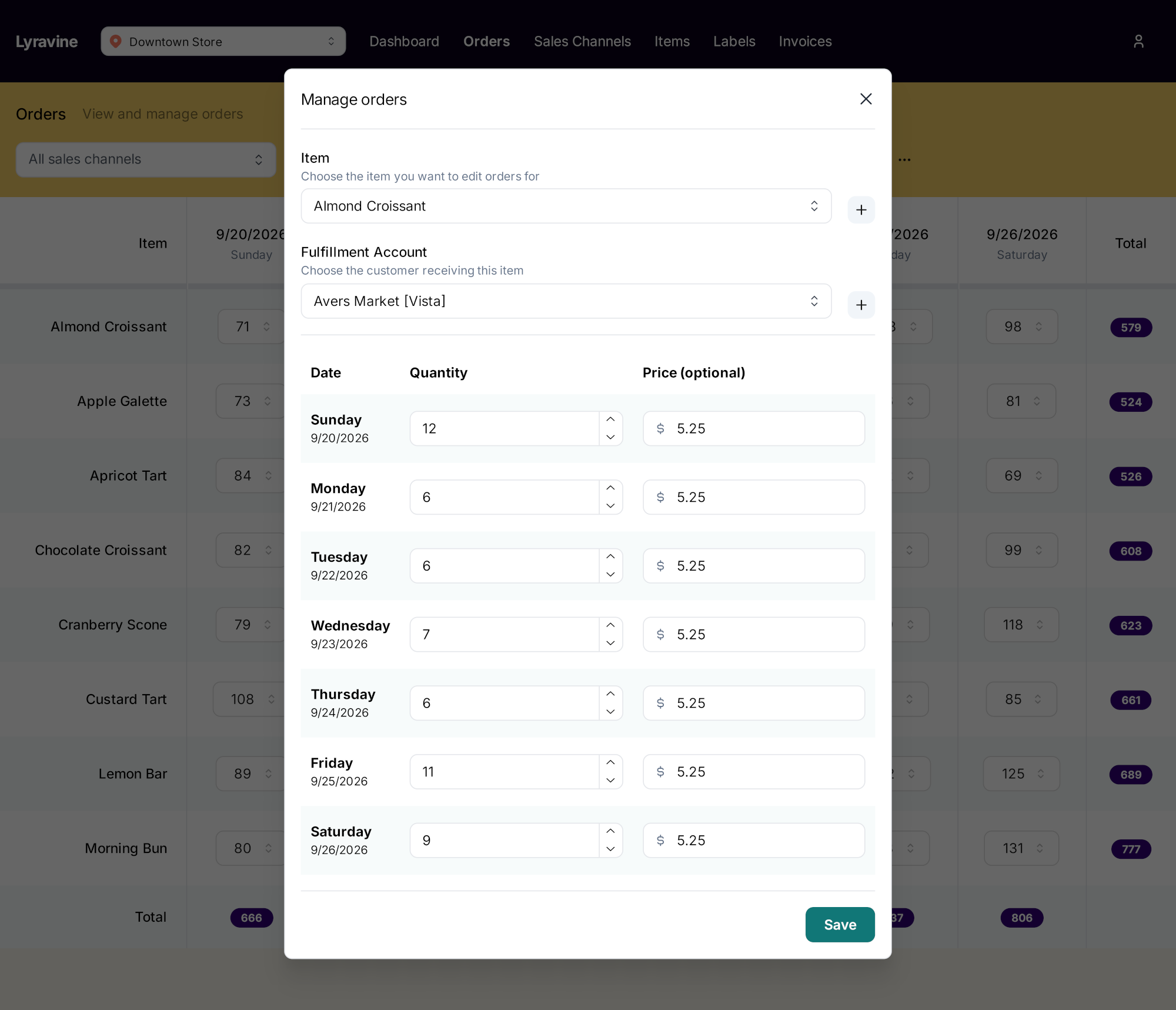 Lyravine gives you a clear, accurate breakdown of daily production totals by item, so your team can prep without second-guessing.